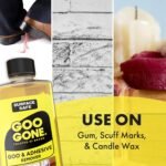 - Works On – Stickers, candle wax, permanent marker, crayon, glue, gum, tape residue, adhesive, paint, tree sap, tar and more