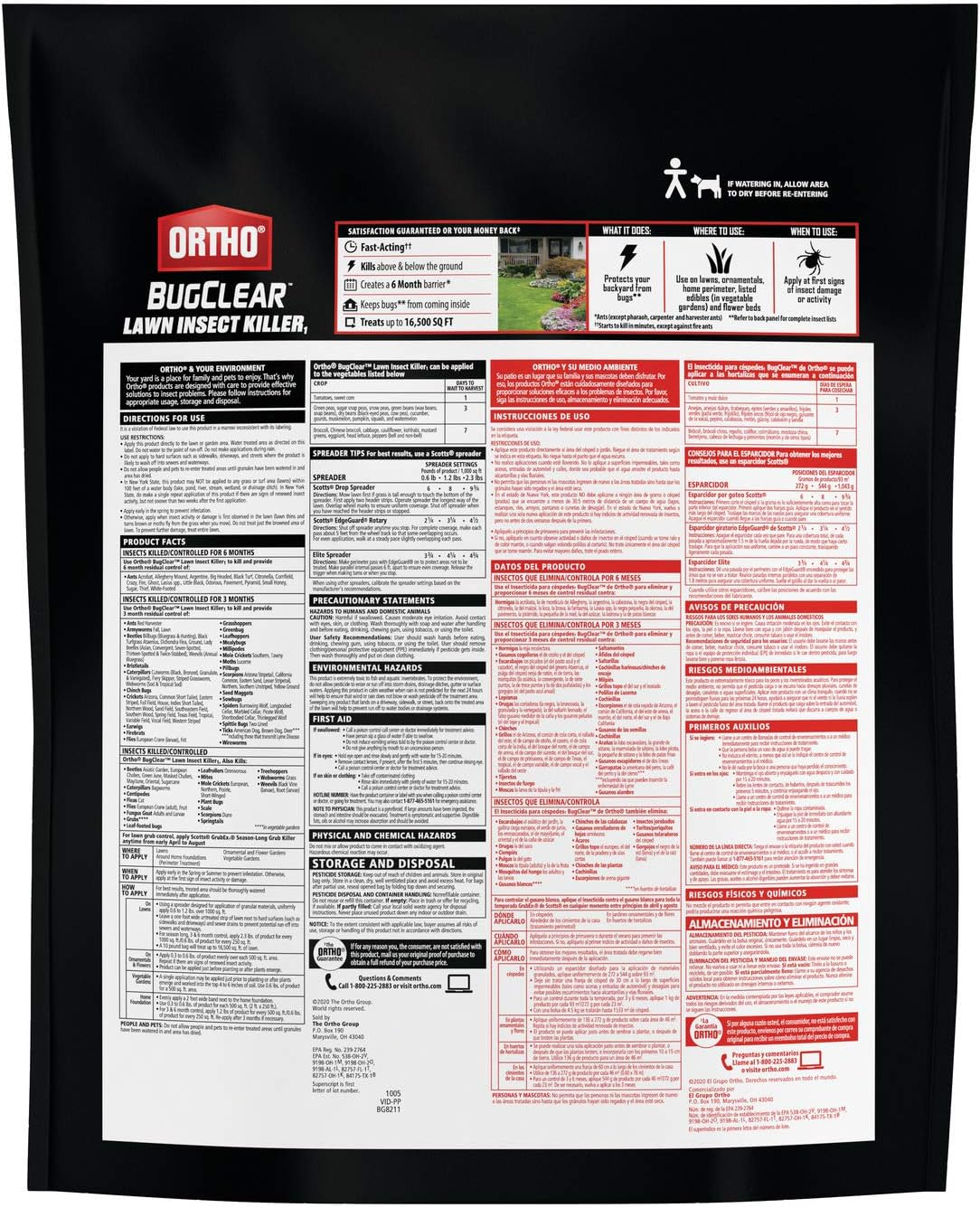- This 10 lb. container of Ortho BugClear Lawn Insect Killer1 treats up to 16,500 sq. ft