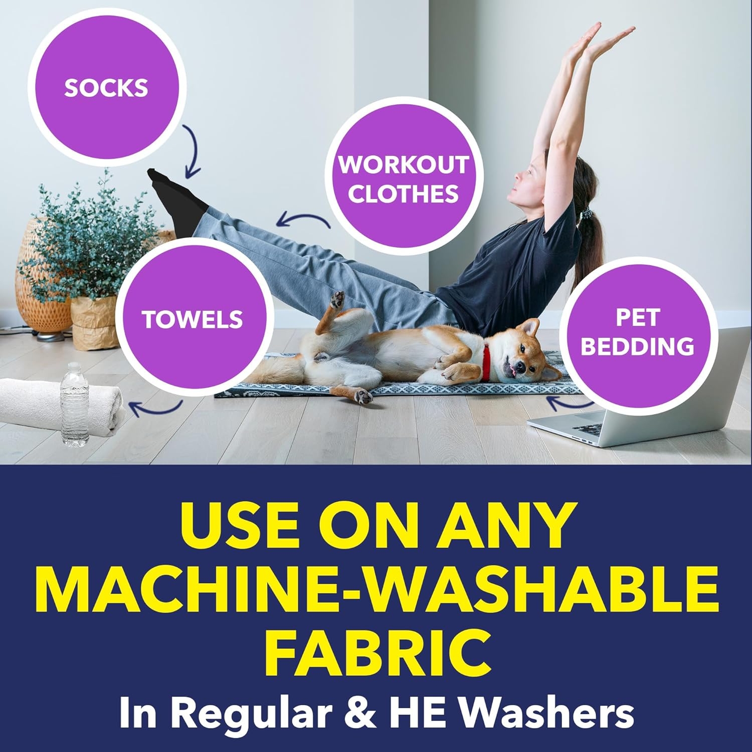 - Liquid laundry booster works with regular detergent in HE or standard washers as a laundry stain remover and odor neutralizer for machine-washable clothing, sheets, towels, workout clothes, shoes, team uniforms, and pet bedding