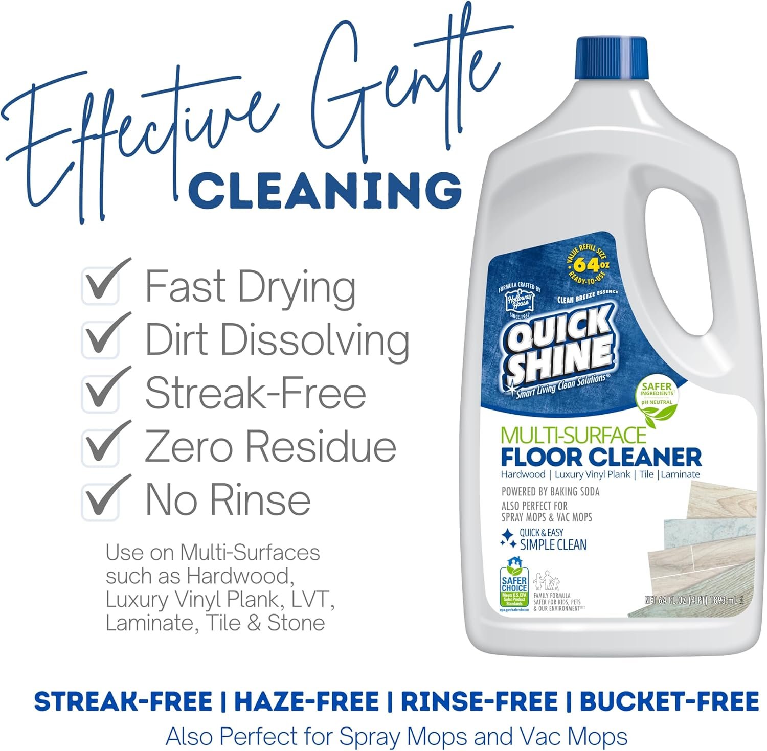 - PREMIUM FLOOR CARE: Quick Shine Floor Cleaners offer premium dirt dissolving, plant-based cleaning plus the cleaning power of natural baking soda