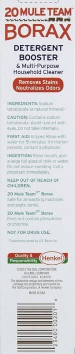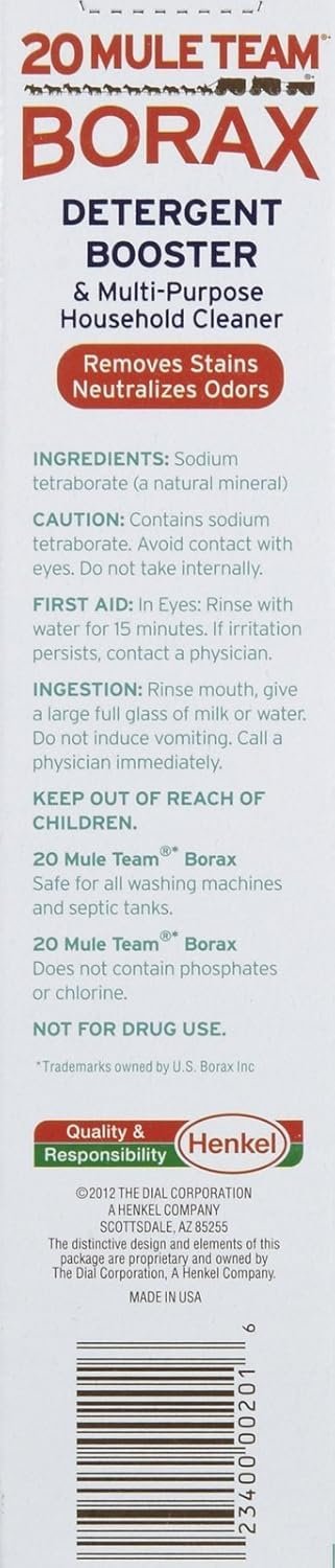 - 20 Mule Team Borax laundry booster is safe for all machines, HE Compatible